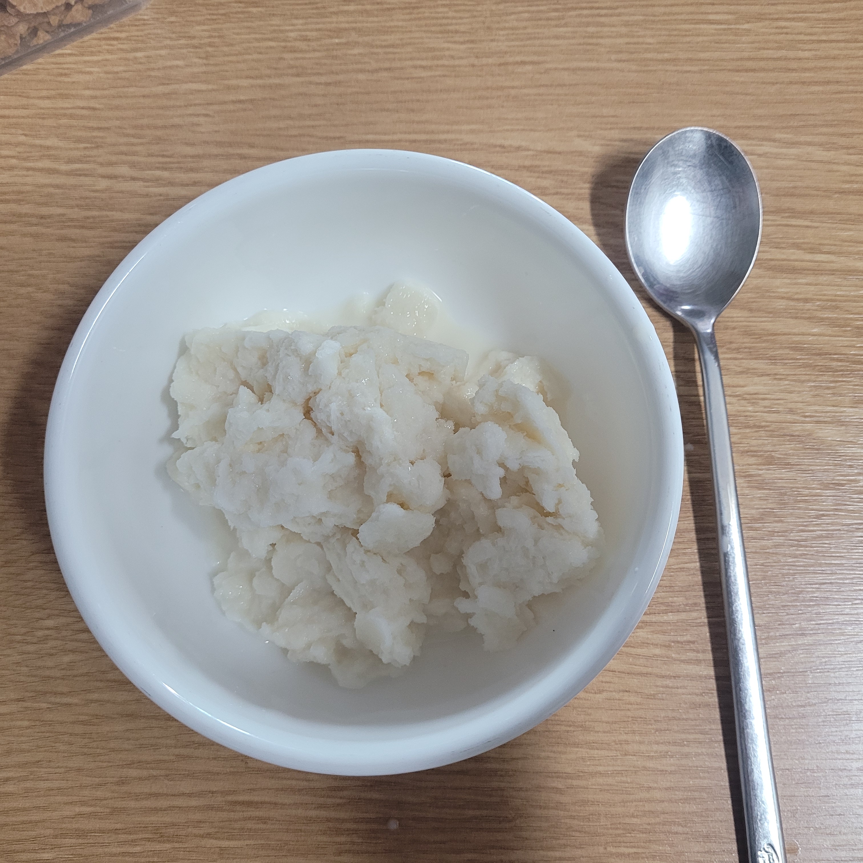 슬러시처럼 얼어버린 우유를 그릇에 부어주도록 하다. 사실 이정도로만 해서 먹어도 꽤나 맛있다. 부드럽고... 달달하고... 근데 정말 차다. 머리가 띵해질 정도로 정말 차자... 아무튼 오늘의 목적은 빙수이니.. 그러고보니 빙수는 얼음을 갈아서 만든다. 어... 가는 과정을 생략하기 위해 슬러시를 만들었다고 생각하자.